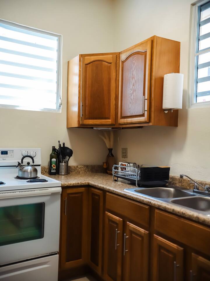 Your home away from home. Its location, amenities and hosts are what make this place unique and a rare find in Puerto Rico. The property is a multifamily home that was made in the 1930s. You will be renting the ENTIRE HOME located on the first level; comes with a Private entrance. This space is great for groups, families, friends, remote workers, expats and anyone who are looking for the perfect get away in Puerto Rico. Looking to accommodate 8-12 people? Send an inquiry to your host now asking for availability or check out our other listings! This spacious unit includes: - 3 bedrooms(1 king size bed & 2 queen beds) - A full kitchen that is equipped with pots, pans, utensils, dishes and most basic things you will need to have in an kitchen. -Refrigerator -Microwave -Private Entrance -Patio with furniture -Toaster - Dining area with a dining table that seats up to 6 -Two Hammocks -blow dryer and flat iron -Pack n' play upon request -board games -Dedicated workspace -FAST WIFI -coffee maker -espresso maker -Caffeinated coffee and sugar -20 minute walk to the beach -Near Pine Grove where a lot of surfers enjoy going -Great place for those looking the Santurce Art Walk -Hot water -Near Old San Juan, Isla Verde and Condado Beach -AC in bedrooms and living room Other amenities include fresh white towels, black towels for makeup, linens, blow dryer, iron, ironing board, hangers, clothes steamer and a flat iron. There is a washer and a dryer in the unit for your use. The apartment is equipped with Wi-Fi and a designated work area if needed. Looking for a private chef? Send an inquiry to BOOK NOW Parking Option: -Free Street Parking -Paid Parking on property(based on availability). $25 to reserve the spot Due to our location being near so many bars, clubs, restaurants and the beach street parking can sometimes be scarce. We have some parking available but please let your hosts know at time of booking that you will need parking accommodations so we can arrange them for you! I’m